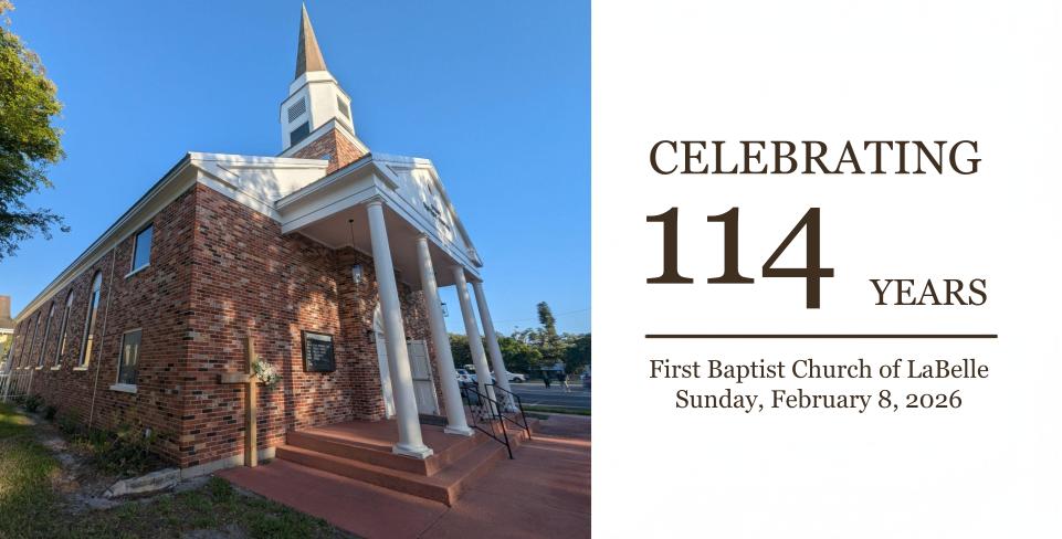 This February, First Baptist Church of LaBelle celebrates 114 years of serving our community and sharing the Gospel. While our official anniversary falls on February 12, we invite you to join us for a special unified celebration on Sunday, February 8.